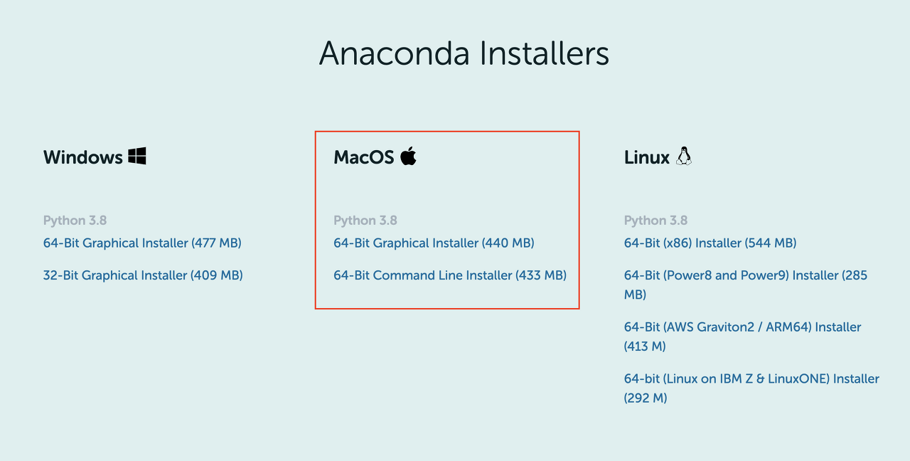 - Graphical Intaller은 그래픽 인터페이스가 있는 GUI 설치 파일이고, Command Line Installer은 터미널 상에서 명령어를 입력하여 설치할 수 있도록 제공하는 코드 형태의 설치 파일이다.