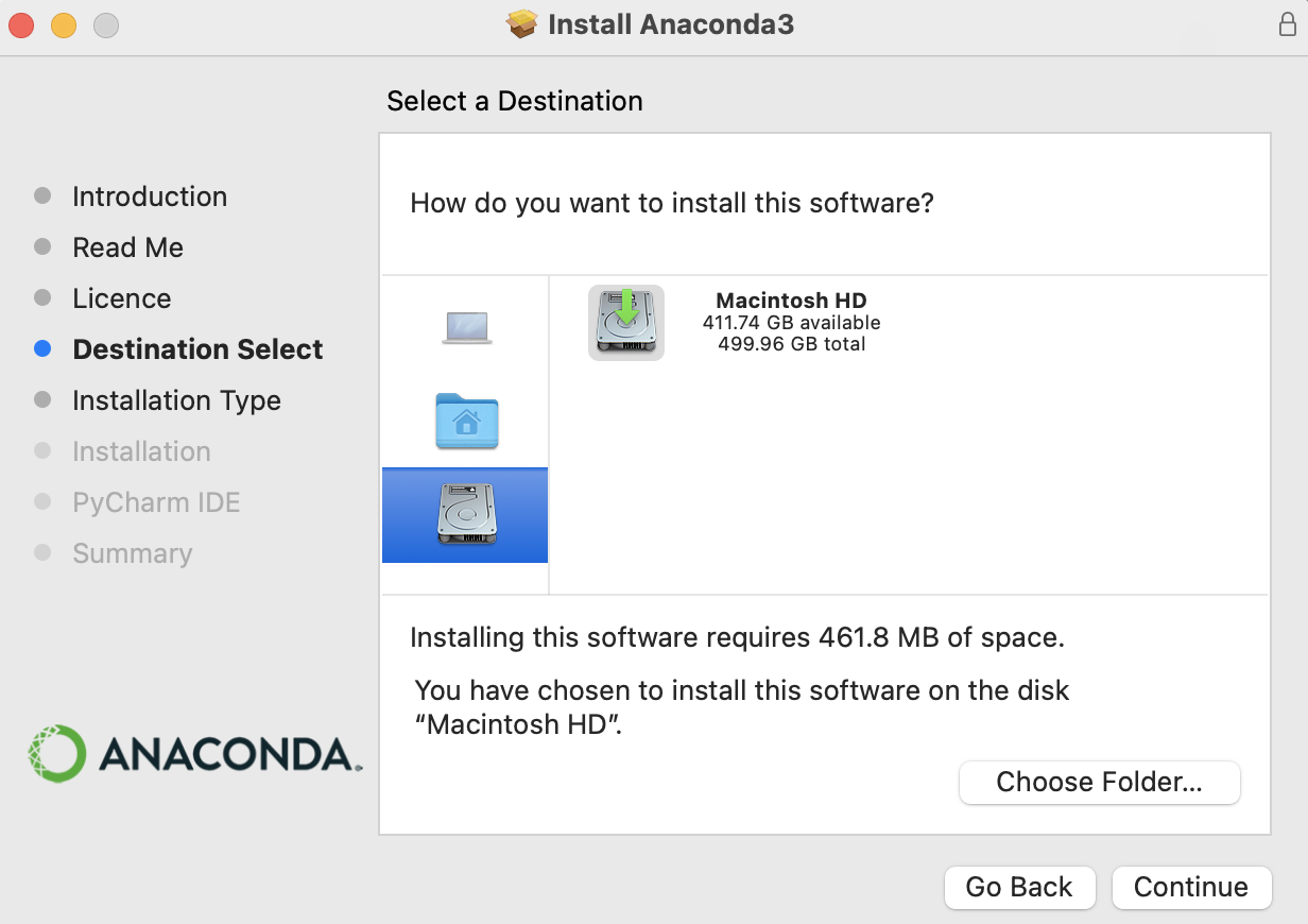 - 왼쪽 메뉴바는 설치 프로세스 (단계)이며 각 단계에서 계속 'continue' 버튼을 눌러주면 된다. (즉, 설치 설정 값은 default 기본으로 하면 된다.)