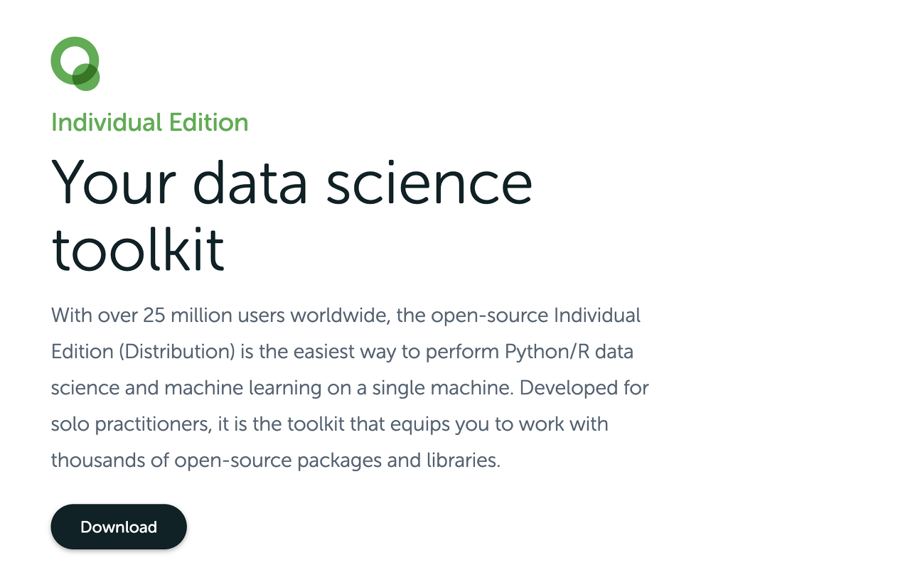 - 홈페이지 상단 메뉴바에서 'Download Anaconda' 메뉴를 클릭한다.
