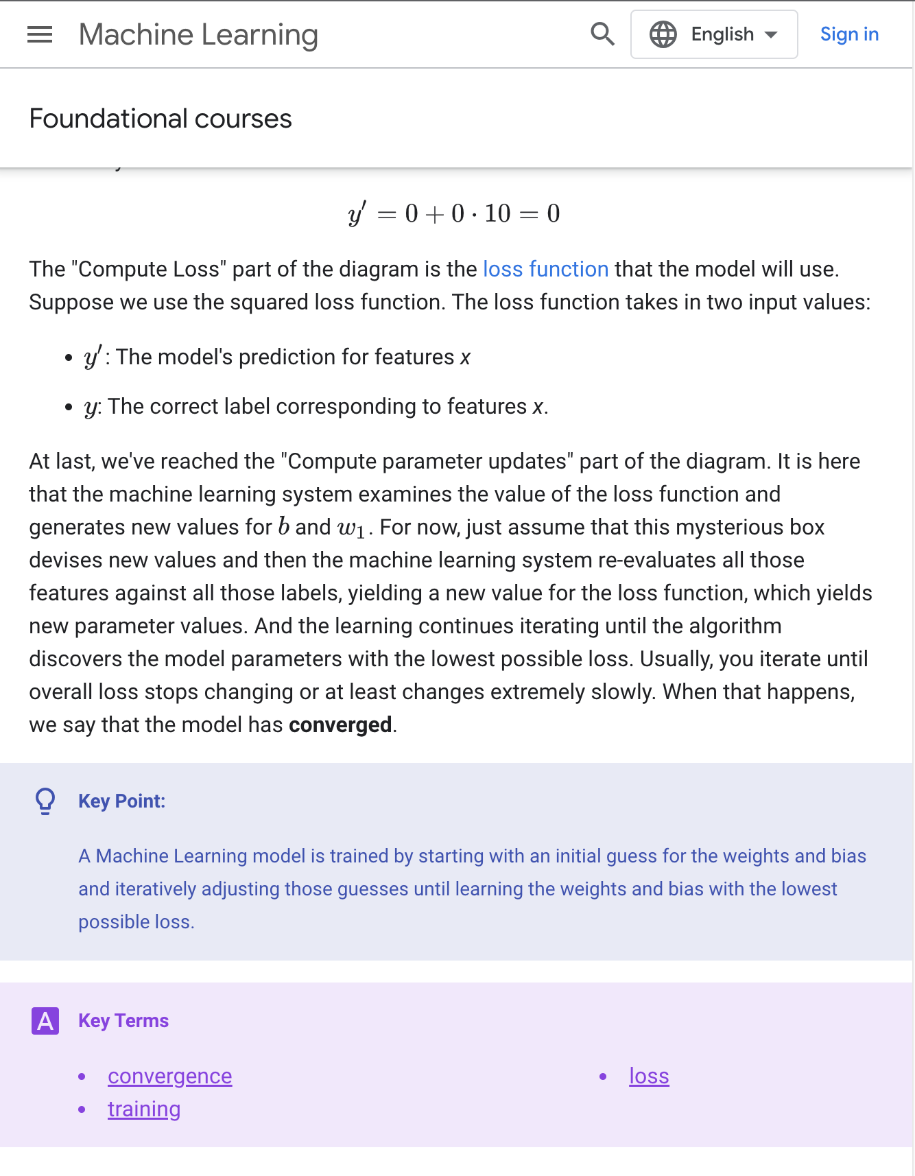 추가로 구글에서 제공하는 머신러닝 용어집 (Machine Learning Glossary) 사이트도 있다. 공부하다가 모르는 부분은 페이지 아래의 'Key Terms'에 있는 링크를 클릭하거나 하단 링크를 통해 개념을 검색해서 공부해 보는 방식으로도 사용해 볼 수 있다.