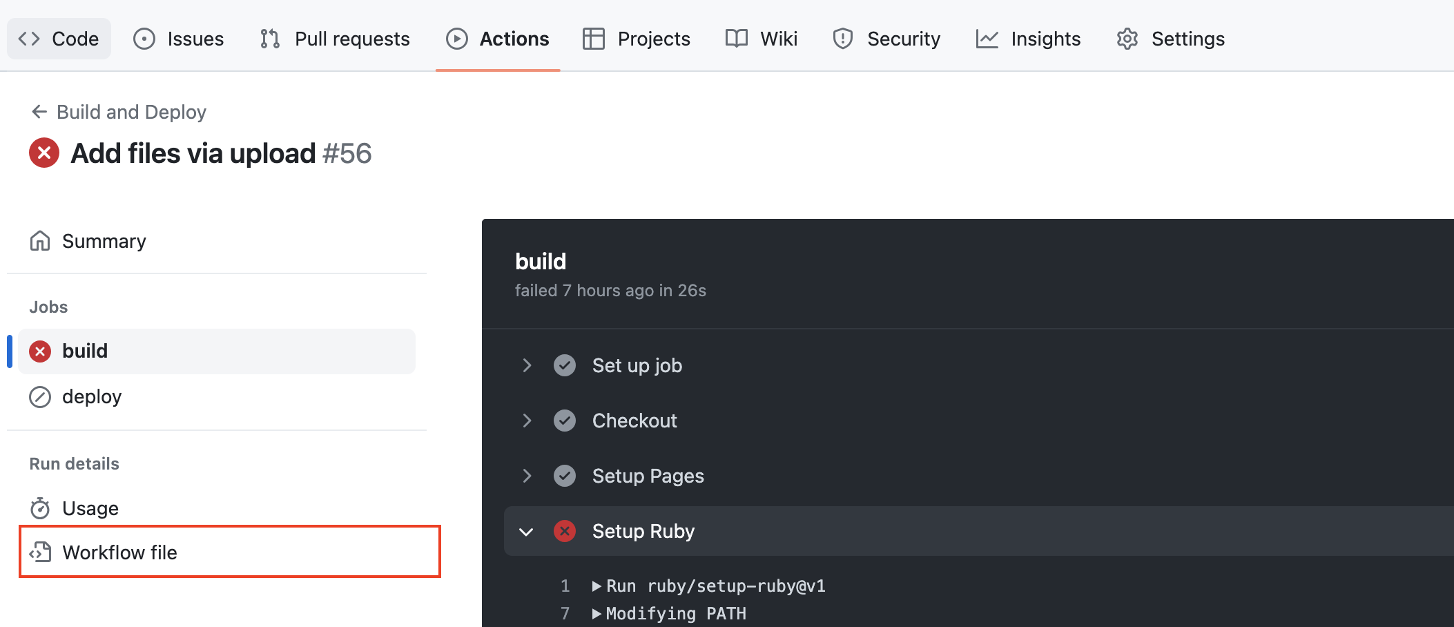 ruby version을 한번 수정하면 일단 전체 workflow file에는 반영이 된다. 이전에 실패한 커밋은 반영이 안되는 것 같은데.. 일단 나는 커밋을 새로 했다. (이 방법보다 더 좋은 방법이 있다면 댓글로 공유 부탁드립니다!)
