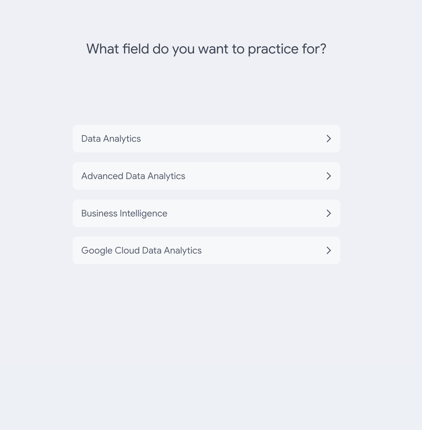 홈페이지 (https://www.cloudskillsboost.google/interview_warmup/category) 에 들어가면 위와 같이 내가 목표로 하는 직군을 선택할 수 있는 창이 나온다. 나 같은 경우 Data Analytics 를 선택했다.